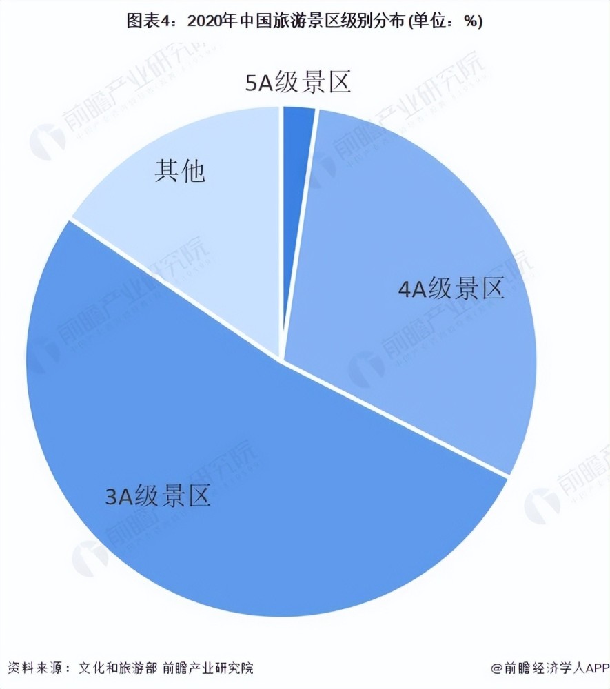 根据文化和旅游部数据,目前,我国A级景区主要以3A级景区为主,2020年共有3A级旅游景区6931个,占比为51.99%。