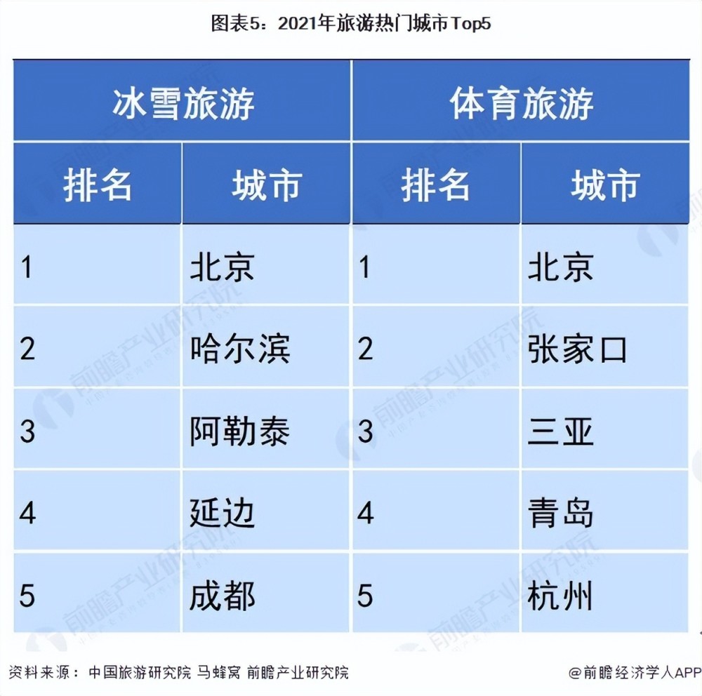 在“冬奥”的助推下,冰雪旅游以及体育旅游进入高景气时期,根据中国旅游院和马蜂窝数据,北京作为“冬奥”的主办地,成为2021年最热旅游城市。