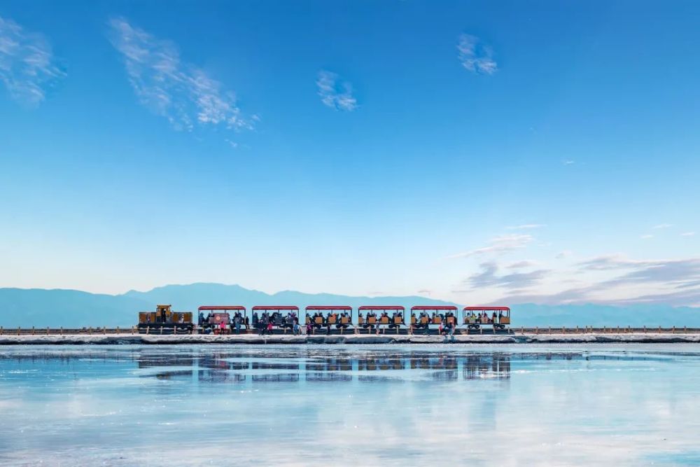 “茶卡盐湖”被称为“中国的天空之境”,盐池银波粼粼。天空映衬下倒影在湖面,看过一次便理解人间仙境的诠释。