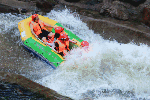 唐家河漂流,26公里生态峡谷!206米极限落差!4m3/秒磅礴水量!2小时巅峰体验!大落差!大水量!大风景!大格局!全程长达120分钟,从高山上顺势下冲,两岸激起的水花将炎热瞬时浇灭。