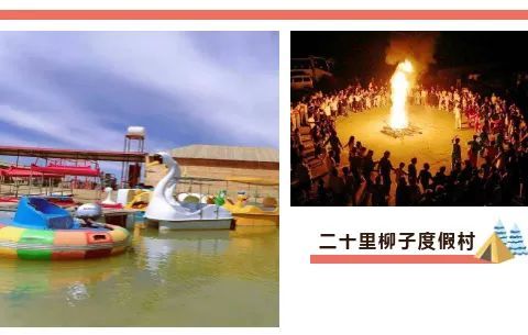 度假村建有餐饮住宿区、休闲垂钓区、烧烤娱乐区、二十里柳子大舞台、水上烧烤、网红桥、水上跳跳床、露天游泳、儿童气垫游泳池、休闲吊床、沙滩椅、沙滩摩托车、鸭鸭船、快艇、摩托艇、生态采摘区及养殖区,是您远离都市喧嚣,尽享乡村生态美好的放松福地。