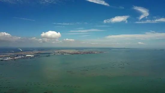 最有特色的是海面上吊养大蚝的一片片浮排,和插养在滩涂上的一块块蚝田,景象壮观。风平浪静的海湾,碧蓝的海水轻轻地摇曳着沉睡的万亩大蚝排,洁白的海鸥不时的掠过海面,生机勃勃而又充满希望。