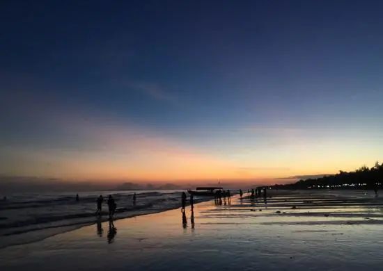 夜幕降临,晚霞渐渐收敛光芒,只剩下一层温柔的光晕,给金滩笼罩上一层暧昧的气息。海边也少了几分嘈杂,只剩下海浪的呓语声,和恋人的嬉戏声。
