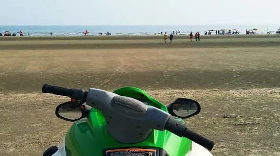 白浪滩的沙子不像别的地方的沙滩是金黄色,而是呈黑褐色,踩上去硬硬的,有点象泥巴的感觉,但是干了以后又会变成沙子。沙滩小电驴可以在沙滩上自由驰骋,一边吹着海风,十分惬意。
