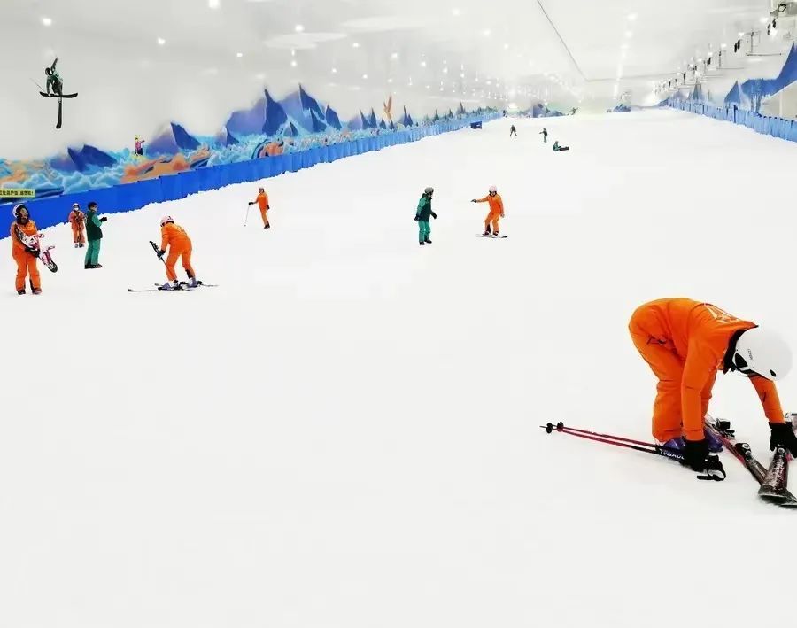 冰雪小镇总占地约400亩,集室内滑雪、室内戏雪、室内冰景、多功能娱乐于一体的大型室内冰雪场馆,其中包括200米标准滑雪道、冰雪精灵城、冰雪水世界、蹦床公园、卡丁车赛道等,全力打造滑、玩、产、游、住一站式冰雪旅居新体验。