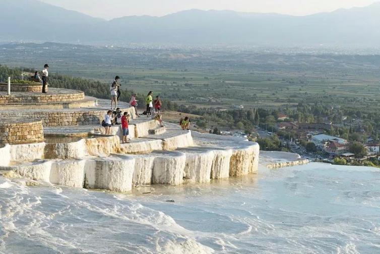 棉花堡位于土耳其西南部,如此可爱的名字,源自其外形像铺满棉花的城堡。所谓“棉花”,就是泉水从山顶往下流,所经之处历经千百年钙化沉淀,形成层层相叠的半圆形白色天然石灰岩阶梯,远看像大朵大朵棉花矗立在山丘上,更像染白了的大梯田。