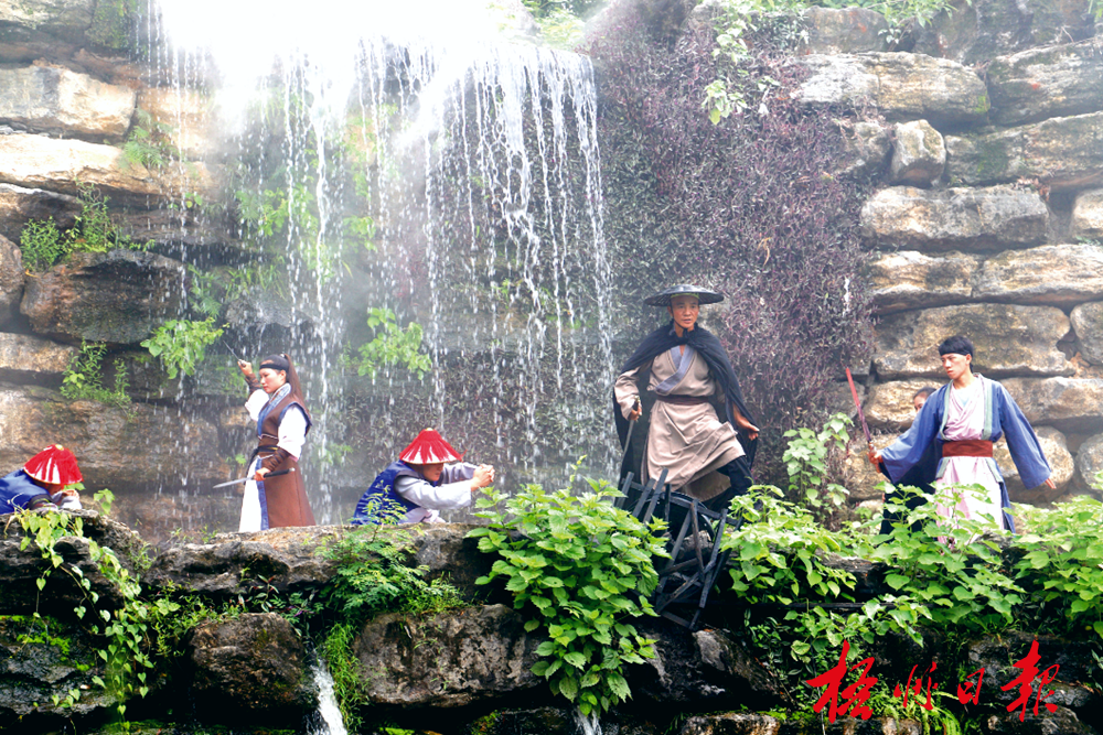 在蒙山县梁羽生公园实景演出的《狮子楼》《七剑下天山》,成为游客了解当地武侠文化的窗口。钟德献 摄