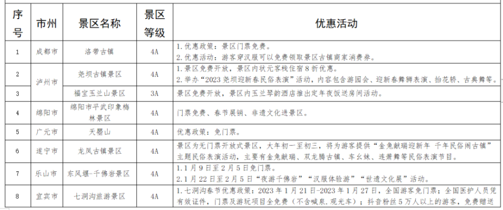 成都市地方优惠政策:1月13日,联合同程旅行、去哪儿、美团、飞猪等OTA平台,增补携程网参与,面向全国游客发放了第二批次500万元“烟火暖冬日?安心游成都”文旅消费券,市民游客可前往相应OTA平台领取。用于平台上住宿、旅游线路、旅游景区等旅游产品和服务,涵盖了景区门票、酒店民宿、度假线路等消费品类,覆盖春节、寒假等旅游旺季。