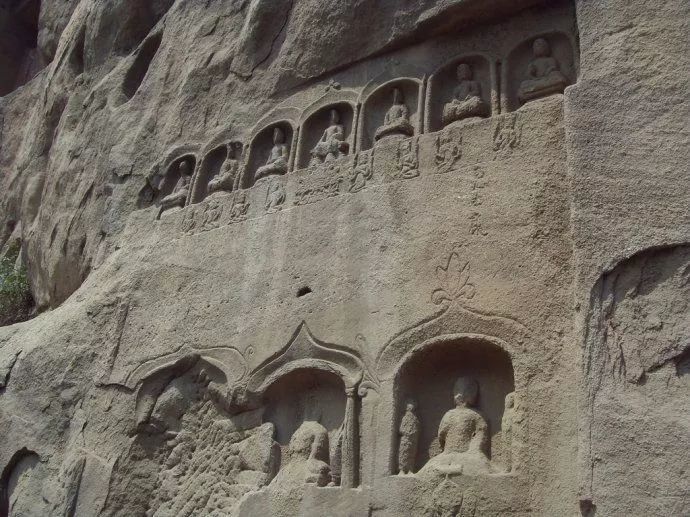 位于太原市西南40公里的天龙山山腰,始凿于东魏年间,共有24个洞窟,其中以第九洞窟“漫山阁”内的唐代石窟为其中精品,内有保存完整的弥勒佛坐像,为古代雕刻艺术的上乘之作。