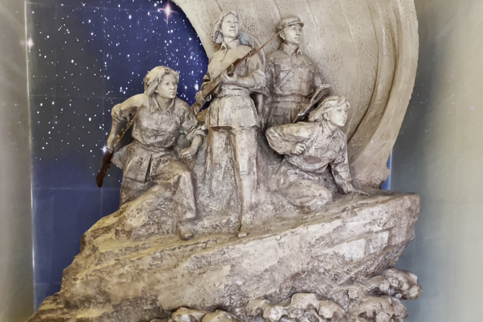 走进序厅,可以看见一尊雕塑、一封贺信、一部专题片。循着地上的时间编码,仿佛走进了洞头先锋女子民兵连60多年的历史长河中。