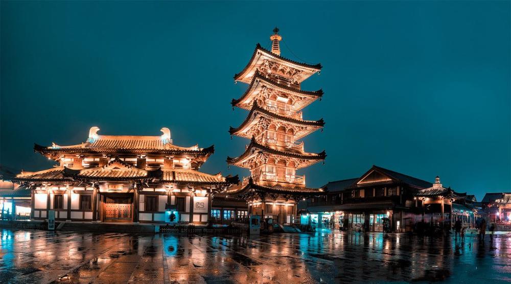 2.灵山小镇拈花湾:小镇整体建筑风格与日本奈良非常相似,又融入了中国江南小镇特有的水系,打造出了一种独有的建筑风格。