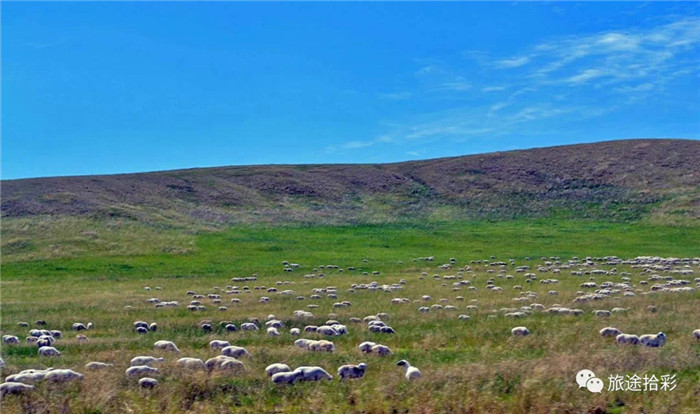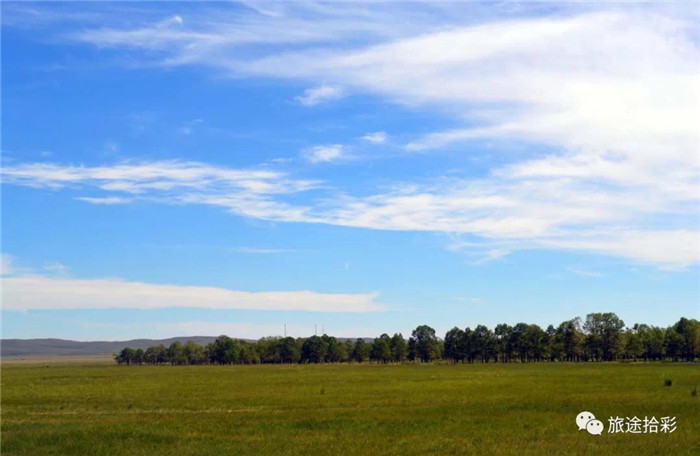 当车子走过乌兰浩特市后,眼前的景色渐渐地变成了草原色彩。一片片如茵的草地,一群群如云的牛羊,就连路边的树木和野花也与其他地方长得不一样。