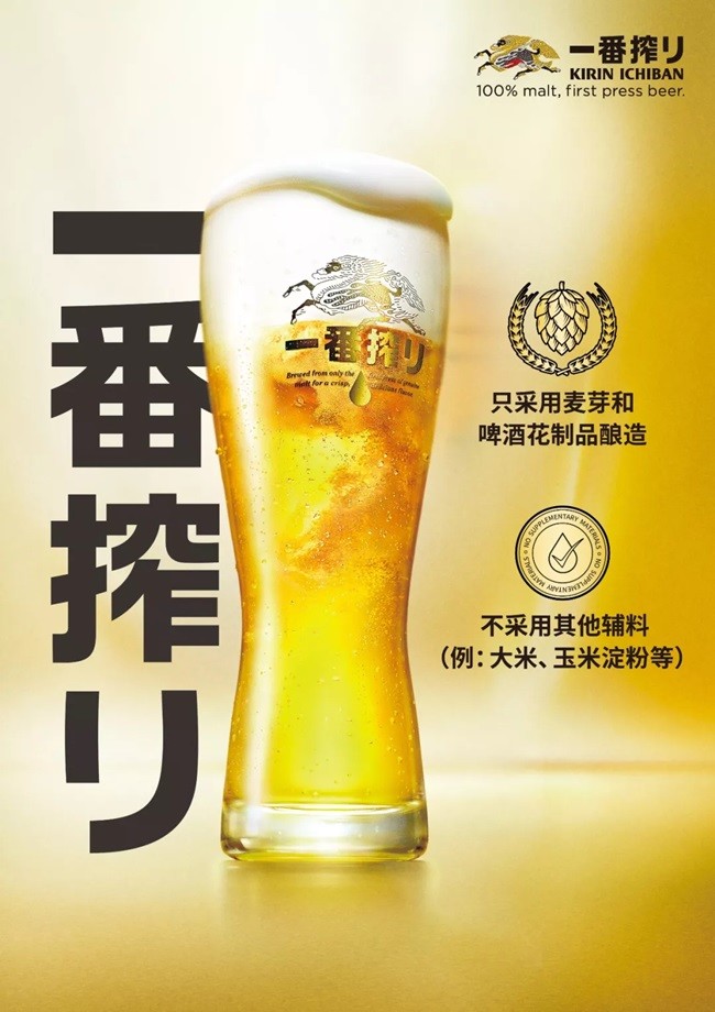 麒麟是具有百年历史的日本品牌。主打产品麒麟一番榨啤酒采用独特的一番榨酿造工艺,只萃取第一道麦芽汁酿制而成。是通过细腻的口感与温馨的氛围,提高生活品质的啤酒。