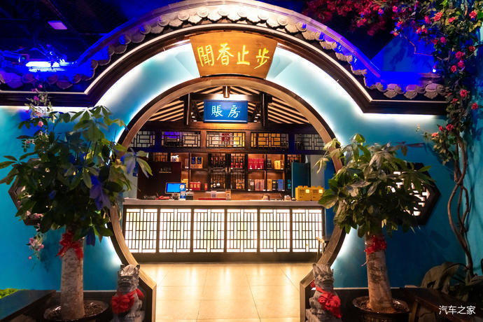 走进餐厅,仿佛穿越到了古代的客栈酒楼,圆形拱门、账房、古色古香的招牌,复古的中式桌椅、还有高悬于顶的中式大灯笼,无不透露出中式传统的韵味,高级典雅,派头十足。