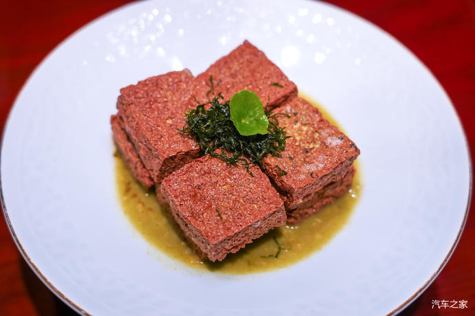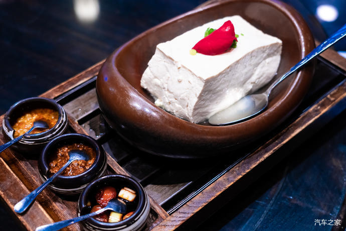 来这里必点的是石磨一块豆腐,纯手工磨制的豆腐,口感跟机器做出的完全不一样,同时完好的保存了更多的维生素、蛋白质和矿物元素,好吃又健康,豆腐口感温润细腻,搭配三种不同口味的酱料,非常入味。