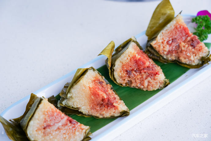黑猪肉粽,选用精品黑猪肉,粽子里裹着的是蛋黄猪脚肉,一口鲜香,美味至极。地址:三亚中海路3号海角院子