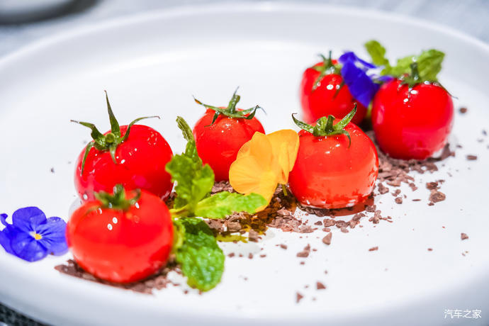 番茄脆果沙拉,用沙拉酱搭配腰果和巧克力碎,令这道菜的口感产生了算算甜甜的味道,有种初恋的味道。详细地址:三亚市二横巷八角楼四层