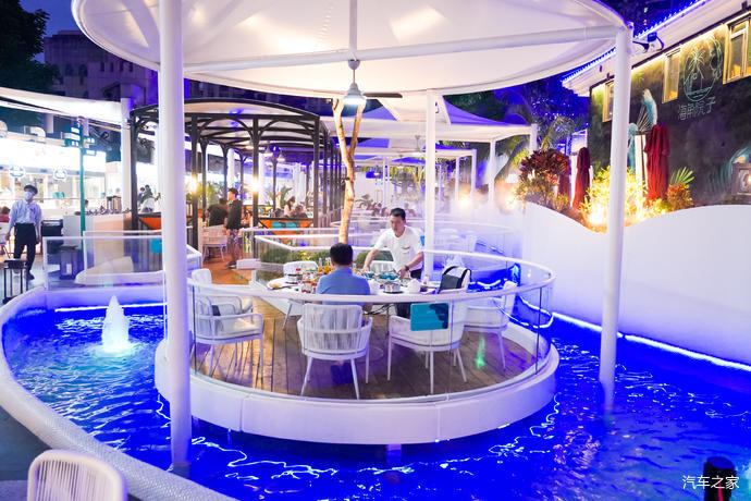 餐厅位于海角院子,这里是美食的汇聚地,同时也是非常漂亮的网红打卡地,夜幕降临,美轮美奂的透明圆球,蓝色灯光亮起特别的梦幻,可以在这里休息、拍照。