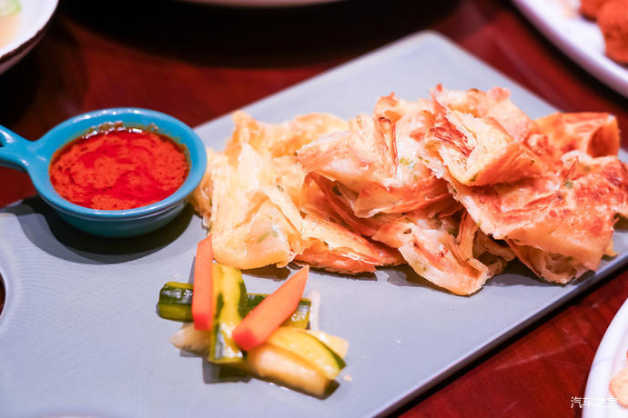 黄油煎饼配咖喱酱,烤至酥脆的煎饼,搭配口感浓郁的黄油和咖喱酱,简直完美,一口嘎嘣脆,好吃到停不下来。