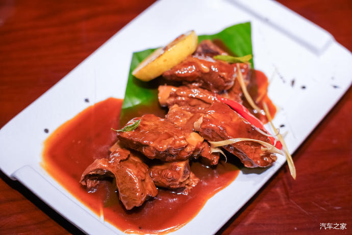 侨乡焖猪肋排,一道经典的猪肋排,肉质鲜嫩,口感微辣,再滴上几滴柠檬汁便成就了微微酸辣的口感,特别开胃。