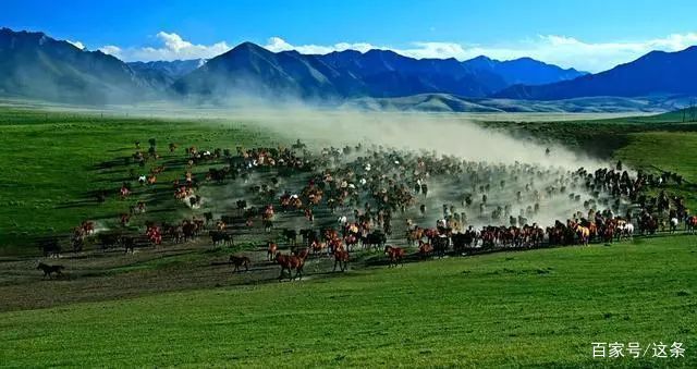 成群的牛羊和马匹,自由自在地吃草、戏耍,辽阔而一望无垠的草原让人心胸无比开阔。