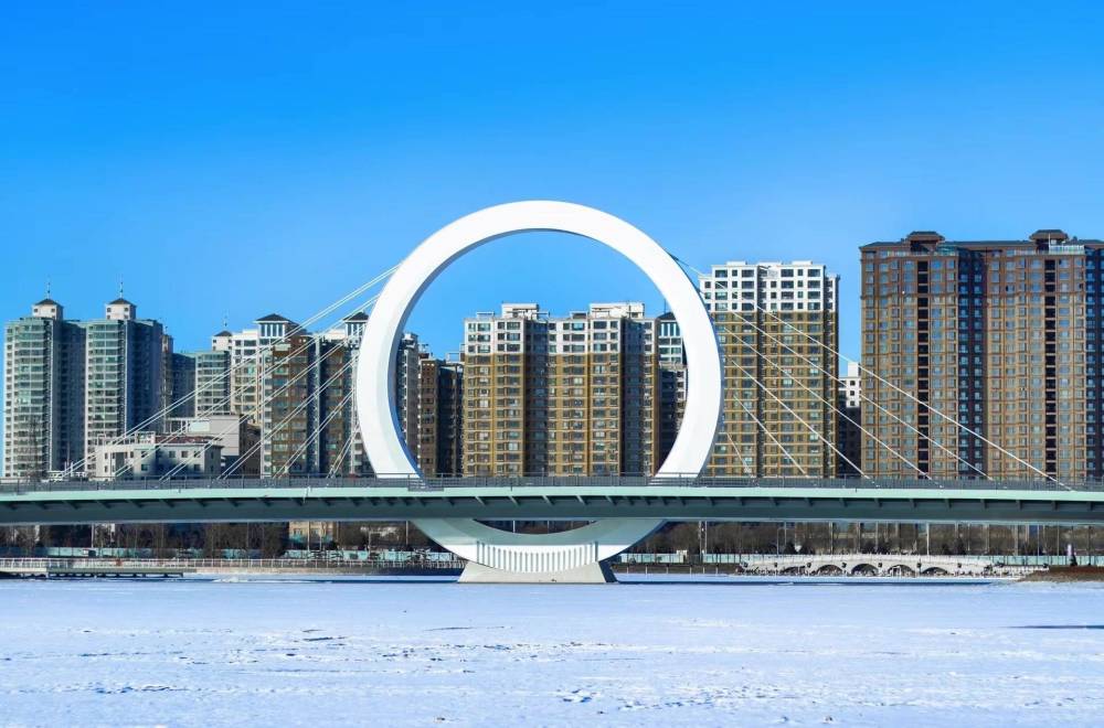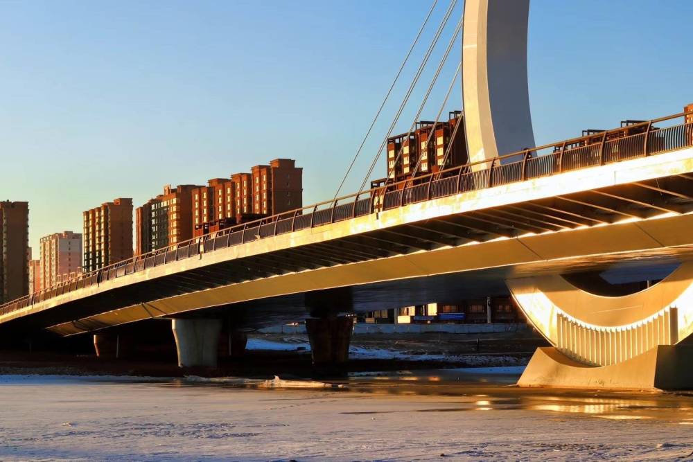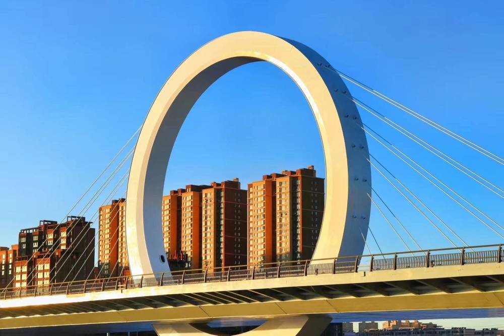 据建设单位介绍,皓月桥预计将于2023年1月20日正式建成投入使用。截至目前,大桥主体建设已基本完成,整栋建筑有着极强的视觉冲击感,让前来打卡的人们不用加滤镜,也能拍出大片。目前已经有不少市民朋友前往拍照打卡。