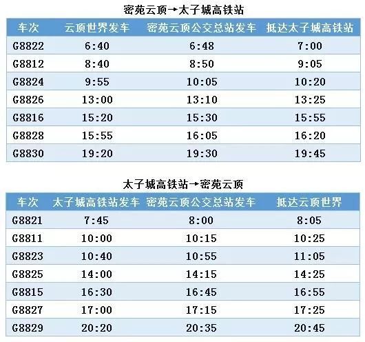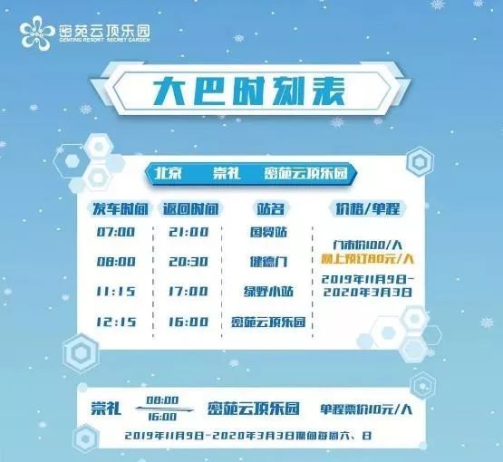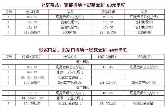 1月11日起北京南站、首都机场、张家口机场及张家口站开往密苑云顶乐园的直通车正式运营。