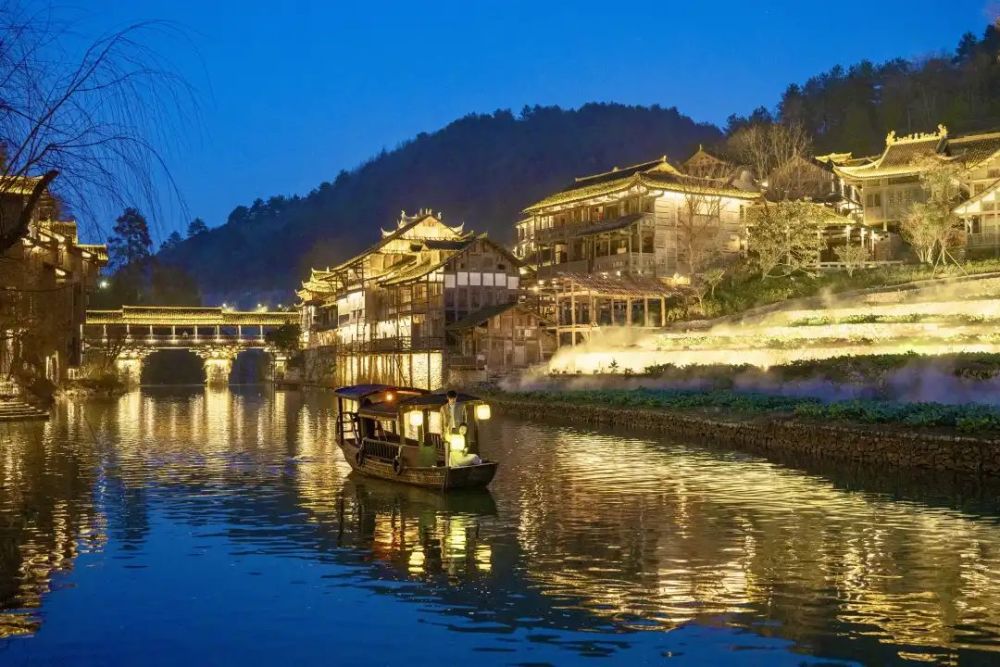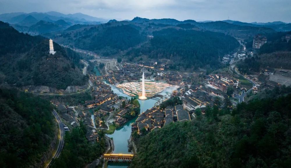 乌江寨国际旅游度假区是集观光、休闲、度假、会展为一体的大型综合业态的旅游目的地景区,依托于恬静的山水,自然环境和浓厚的黔北村寨民俗氛围,结合自然山势与河道地形综合整治、修缮、复建和改建,呈现出一幅黔北民居群落画卷。