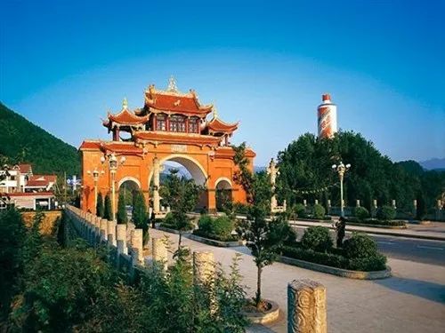 国酒门是出入茅台镇的门户,位于盐津河大桥的东端。国酒门为中国古典城楼式建筑,两侧各立一根华表,一殿二亭四重檐,门楼上可供人们观光游览。整个建筑高大气派,庄重华丽,象征着国酒茅台源远流长的历史和享誉海内外高贵典雅的气质。