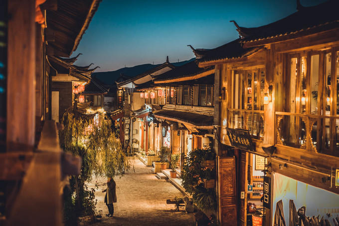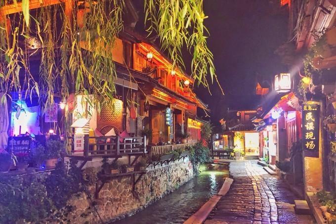 我们落地是正好是下午,阿夏有车过来接我们去预定好的客栈。放好行李就迫不急待的开始游玩丽江古城了。夜晚的丽江华灯初上,古城中央的山头灯火通明,街上人有涌动,热闹非凡,倒叫人心底生出了一丝暖意。第一天晚上就去酒吧坐了坐。