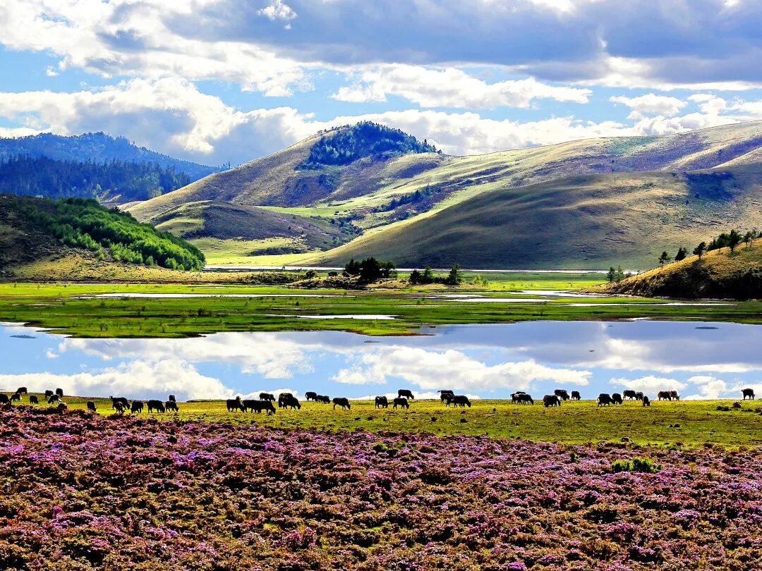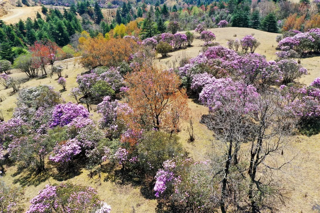 5月,正是昭觉谷克德省级湿地公园杜鹃花盛开的季节,姹紫嫣红的索玛花把整个谷克德湿地渲染得五彩斑斓。