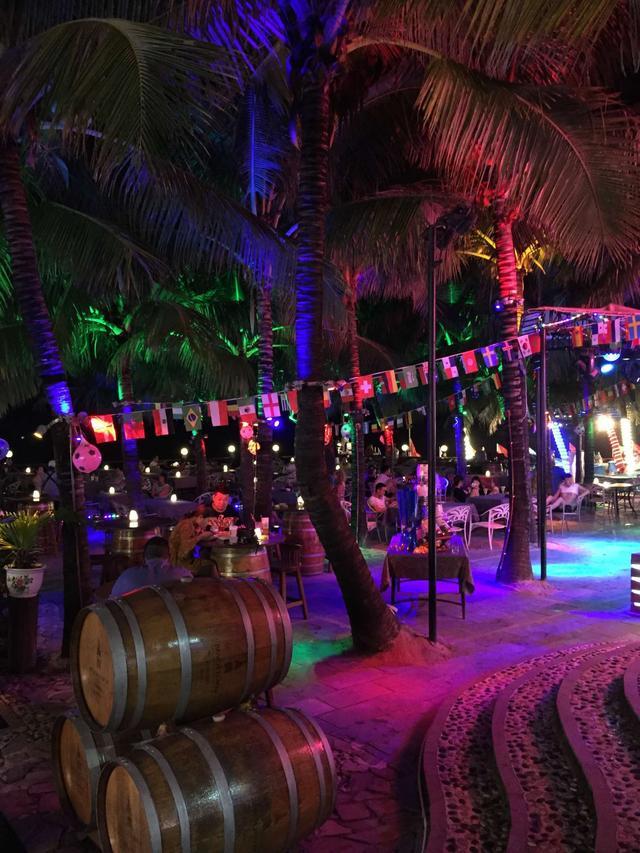 除了美丽的景色,大东海附近有很多吃喝玩的地方,民宿、饭店、酒吧,白天在沙滩上晒太阳,晚上可以到海边的酒吧,坐在海边,看驻唱歌手的表演,喝着啤酒,吹着海风。