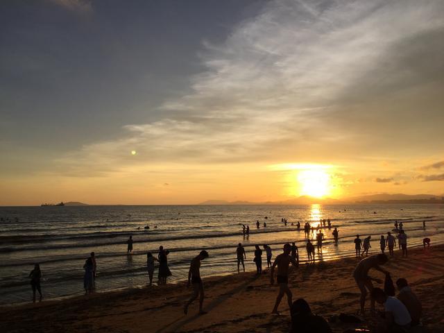 三亚湾有绵延二十多公里椰树滨海大道,椰梦长廊就在三亚湾,不得不说三亚湾是一个观看日落的好地方,临近太阳西下的时分,坐在沙滩上,看太阳一点点下沉,任由落日的余晖照在脸上、身上。