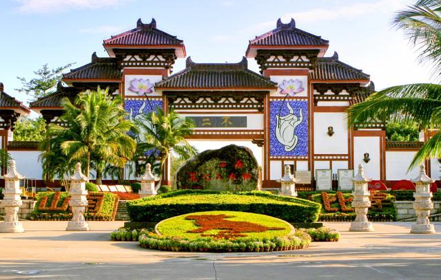游览南山寺,不二法门,感受海南的佛教文化。导游介绍, “不二”表示世间万物都是平等的,没有区别,万物皆由因缘和合而生,因缘不再,事物就不复存在,一切都是虚无,都是“空”。