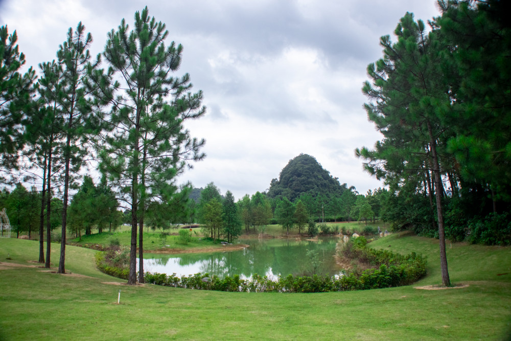 仙湖温泉旅游度假区,青山环绕,绿水荡漾,绿植覆盖率达到90%以上