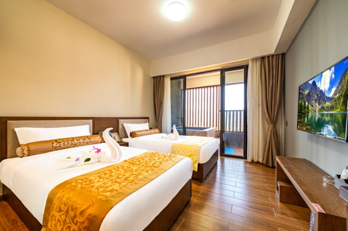 2、入住人数:建议2人或2大1小,大床房1.8米,双床房1.2米X2张
