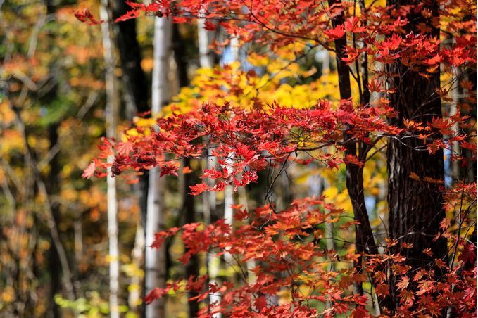 的确如此,红叶谷的树木都是饱和度极正的色彩,以“盛”形容绝不为过。来过这的人都不禁感慨,那些万木霜天,那些江枫渔火,不过是些尚未纯粹的颜色罢了。