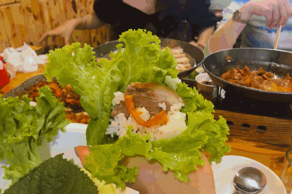 “这里朝鲜族特色美食与东北菜的绝美融合,味道不输韩料的延吉烤肉、五谷杂粮蒸煮的石锅饭、软糯Q弹,米香与豆香交融的打糕、细腻绵软,紫菜香脆,鱼子脆弹,一口快乐似神仙的雪蟹、包饭……
