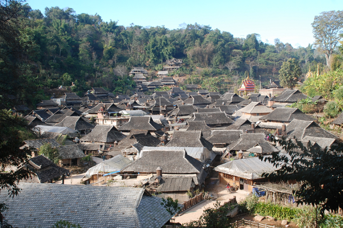 忙坝村民小组是思茅区思茅港镇茨竹林村辖区内的一个布朗族寨子,位于糯扎渡自然保护区边上,有50多户人家,200多人,从那澜驱车1个多小时即可到达。这是一个山清水秀、鸟语花香、人杰地灵的地方,在这里世代生活着的除了热情好客、淳朴善良的布朗族群众以外,还有数百只被当地人叫作“鹦哥”的一种鸟-大紫胸鹦鹉。忙坝寨子周边有十来棵高大的榕树和菩提树,成为400余只鹦鹉的家, 忙坝也有了“鹦鹉寨”的美名,被摄影界称为“中国的鹦鹉天堂”和“中国一流的观鸟摄鸟基地”。