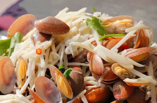 这里不仅风景美,美食小吃更是无论走到哪里都会遇见令人难忘的美食。或者你也可以先逛农贸市场买些海鲜,再来到海边沙滩,这里也有凉棚、桌椅和海鲜代加工点(加工费20-25元/斤)。