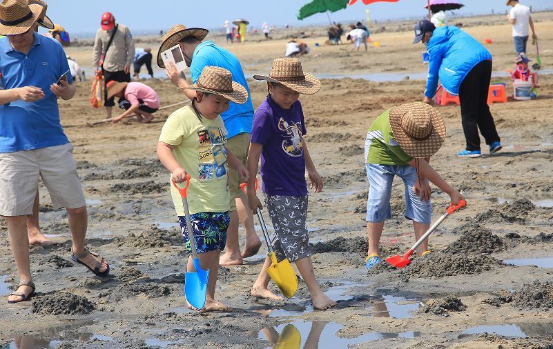 此外,景区内还有疍家赶海体验,小伙伴们可以使用螺耙在沙滩上耙螺,捕捉车螺、蛏子螺、沙虫、沙蟹等海产