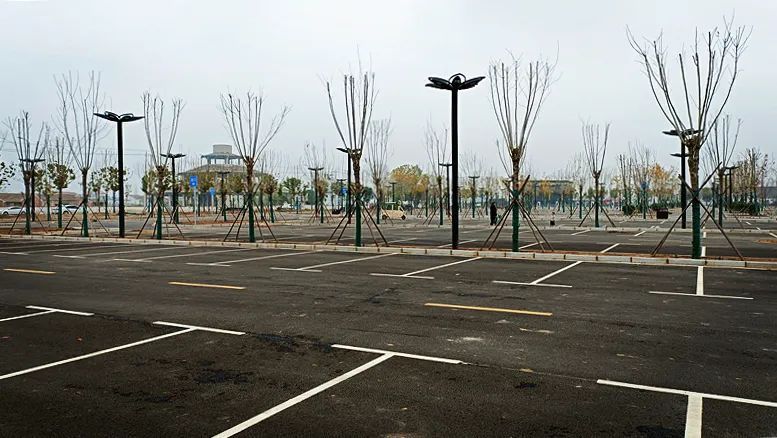 生态停车是指在露天停车场的地面上应用透气透水的铺装材料,每隔一定距离种植一定数量的树木等绿化植物,形成遮荫覆盖,将停车空间与园林绿化空间有机结合。