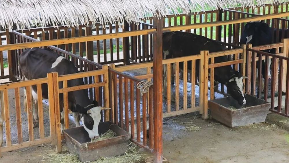 游客可以来挤牛奶喝