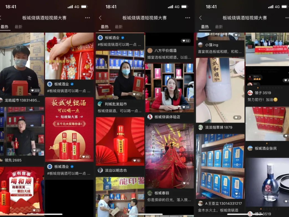 5月20日,板城酒业举办为期1个多月的板城烧锅酒短视频大赛活动,活动期间广大终端店参与,依靠朋友圈、微信群等多种渠道快速传播,使板城和顺喜宴酒达到了极大的声量,为喜宴酒的营销进行了有力的铺垫。