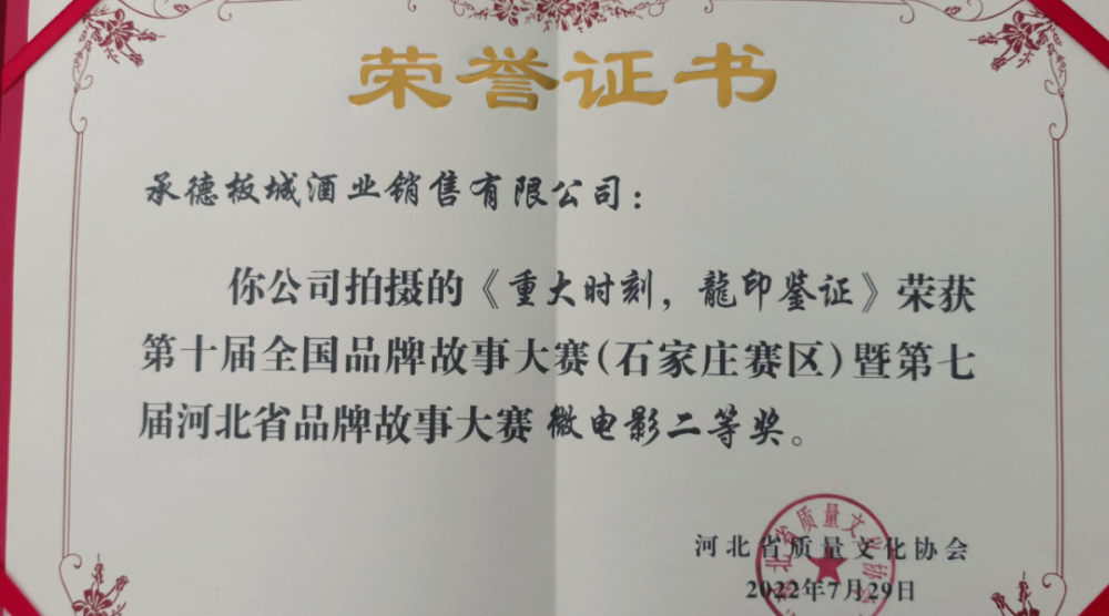 7月29日,以“高质量 可持续 享未来”为主题的第十届全国品牌故事大赛(石家庄赛区)暨第七届河北省品牌故事大赛演讲决赛和颁奖典礼在石家庄隆重举行,板城酒业提报的作品荣获微电影比赛二等奖。