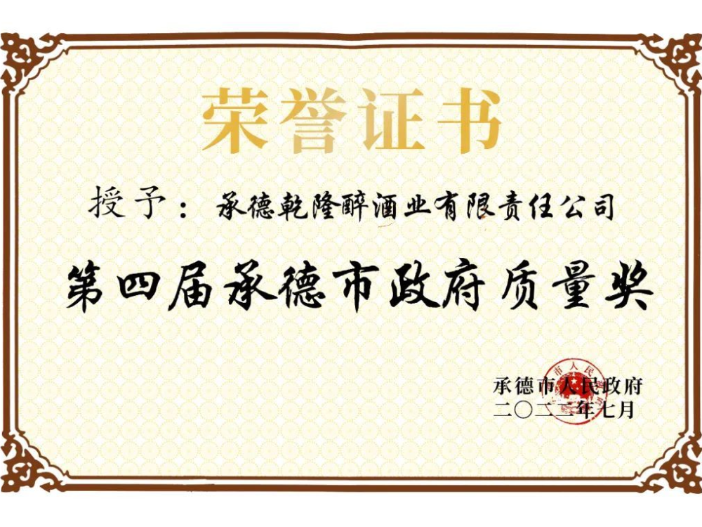再添荣誉!板城酒业荣获“承德市政府质量奖”!