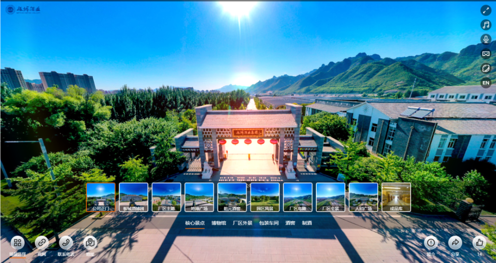 板城酒业VR全景地图震撼上线!只需轻轻滑动屏幕,即可实景游览整个板城酒业,群山环绕,一览无余,一起身临其境感受板城酒业的独特魅力!