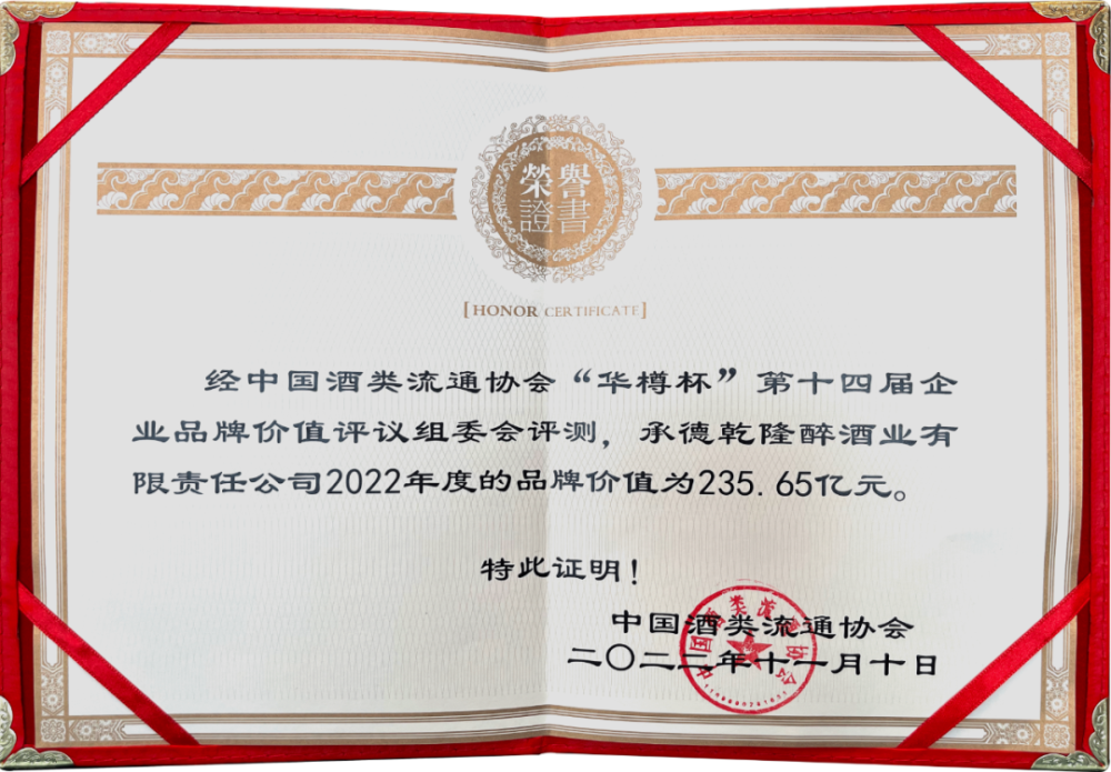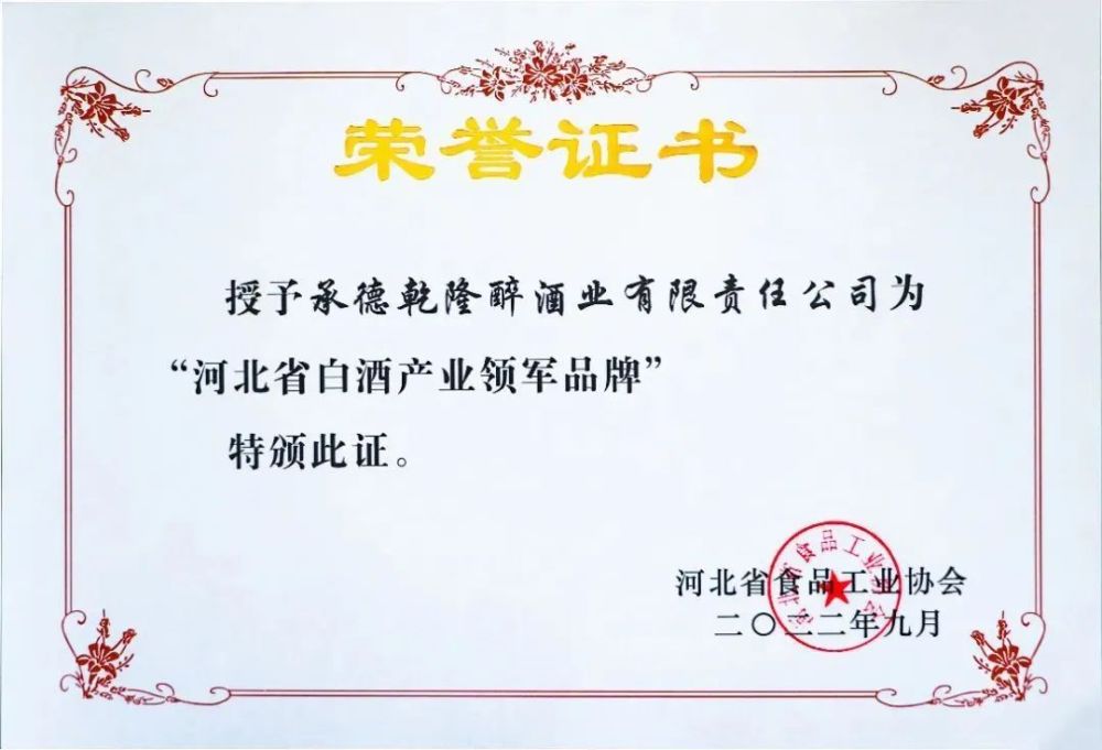 其中,承德乾隆醉酒业有限责任公司,在全省众多白酒品牌中名列前茅,荣获“河北省白酒产业领军品牌”荣誉称号。