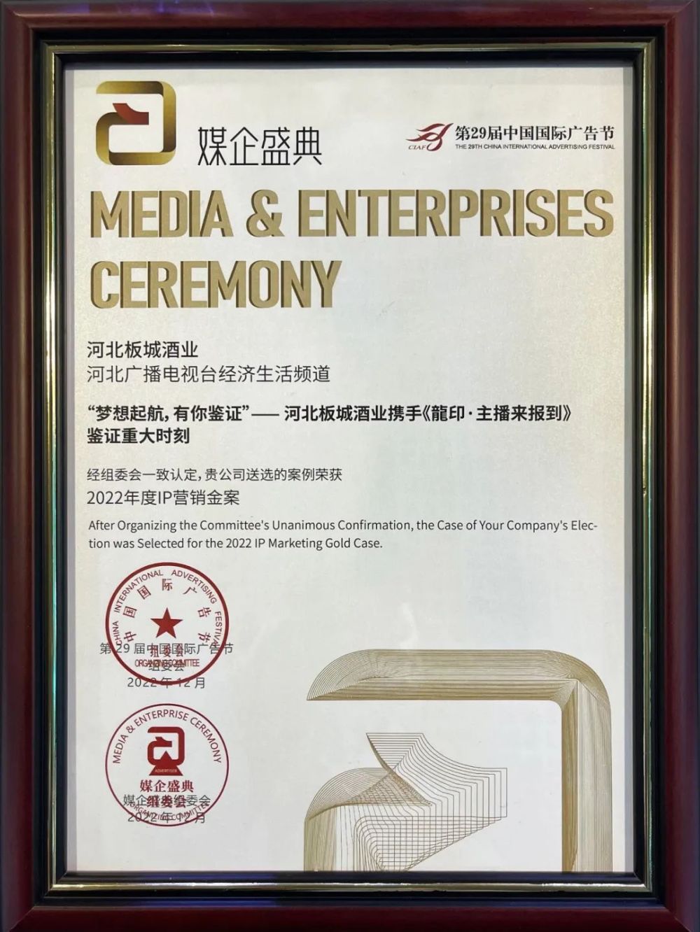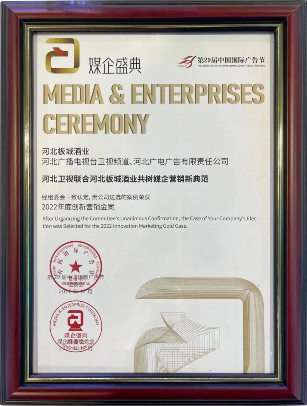 实力出圈 | 板城酒业荣获“2022年度创新营销金案”及“2022年度IP营销金案”殊荣!