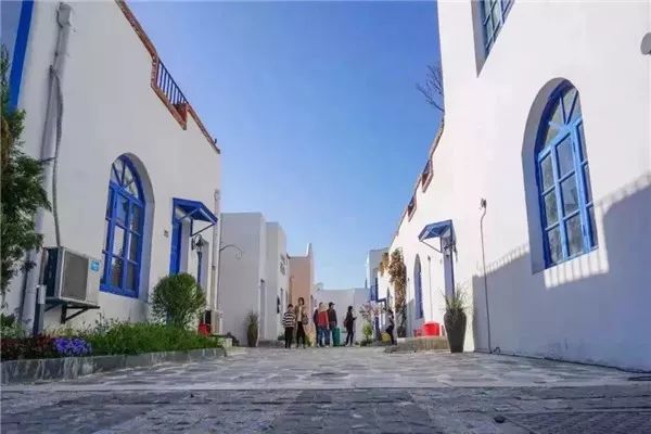 驾车来到三十岗乡崔岗村,地中海圣托里尼是的建筑群映入眼底。音乐小镇集合了生活馆、民谣馆等艺术沙龙于一身。